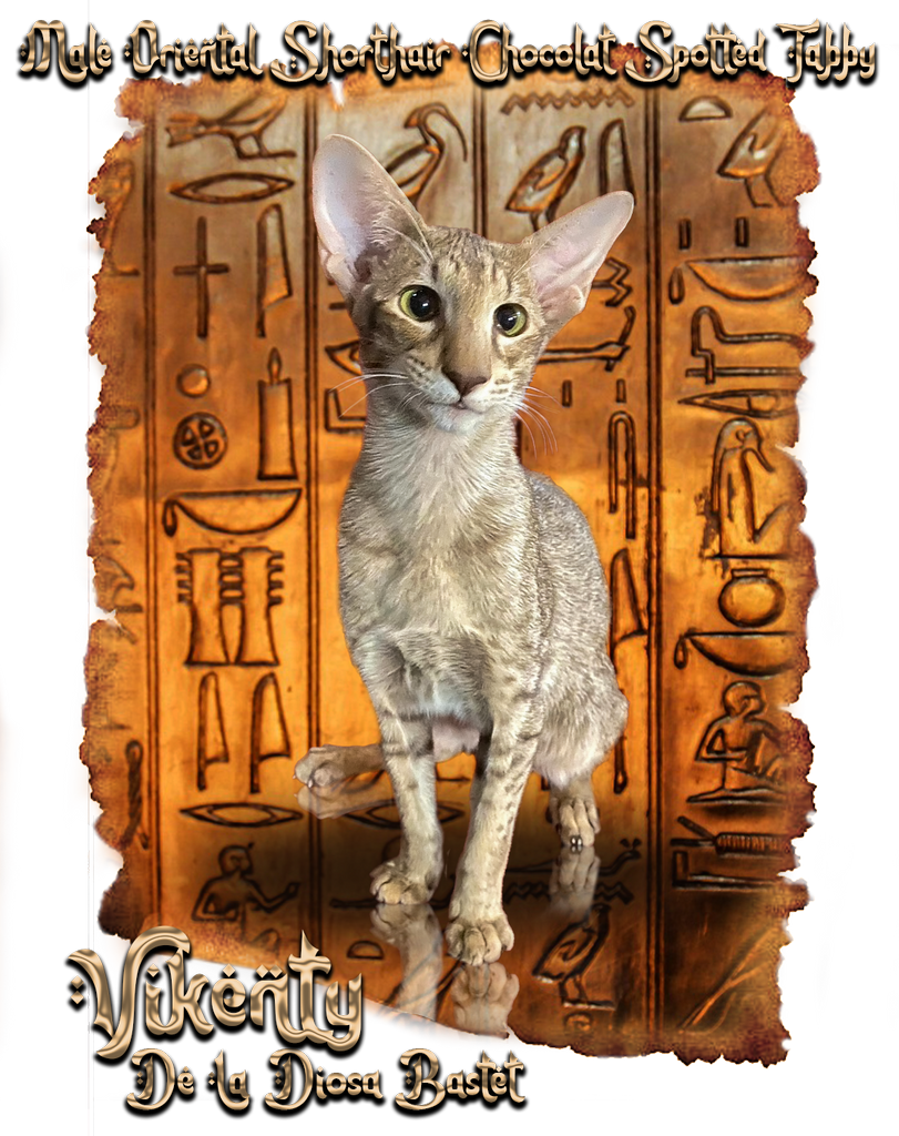 Grande et somptueuse Oriental Shorthair, black tortie, j’en rêvais et un véritable coup de cœur avec ces beaux yeux verts et sa maman l’avait compris, c’est elle-même qui me l’a confié.